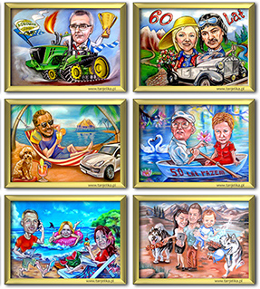 Cennik karykatury kolorowych uzależniony jest od wielkości rysunku i ilości narysowanych na nim osób: